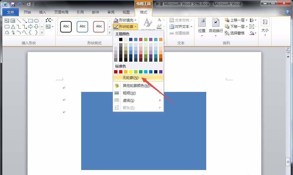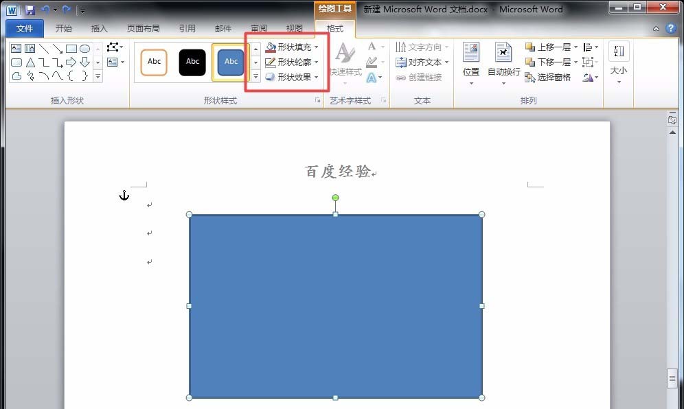 2、接着,点开"格式"菜单,调整矩形的"形状填充"、"形状轮廓"和"形状效果"属性,分别调整为无填充、无轮廓和阴影。