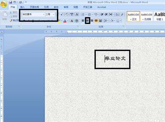 3、背景设置完毕后,页面会返回到主页面,在主页面里我们点击上方的【开始】按钮,设置字体和字号后,然后编辑论文标题,编写完毕后点击上方的【居中】按钮。