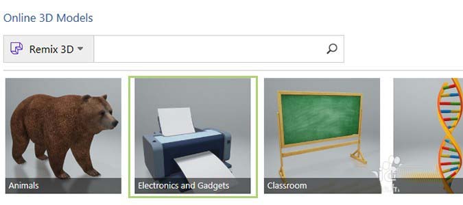 4、选择3D模型,然后选择您自己的文件或Online Sources中的文件,该文件允许您从Remix 3D社区下载艺术作品。
