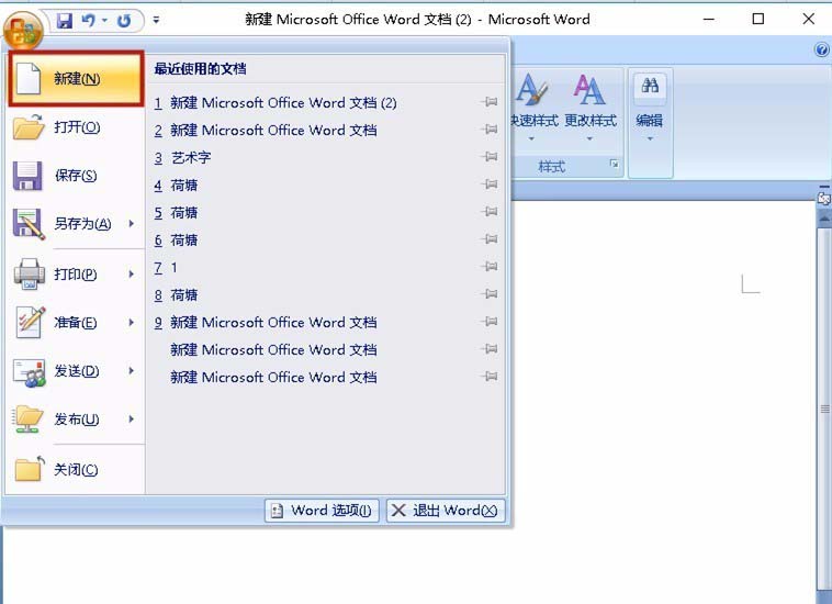 1、打开WORD文件,点击左上角的 OFFICE按钮,然后点击"新建"。