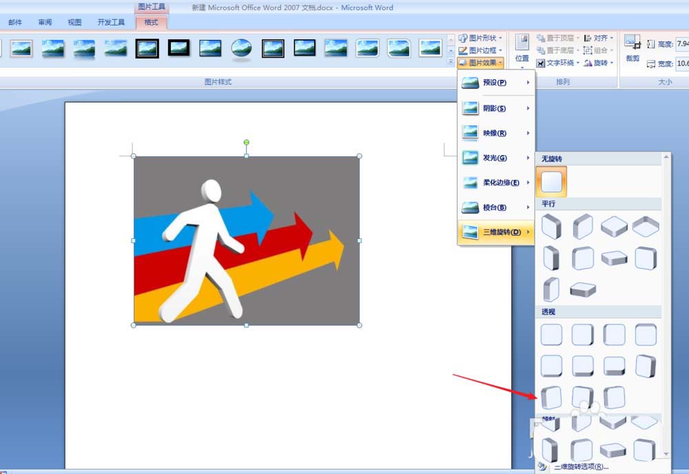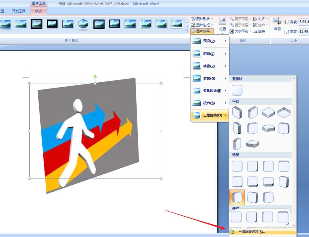 Word2007图片怎么进行三维旋转?