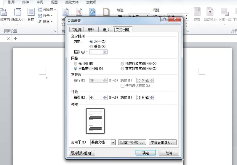 3、在页面设置对话框中,切换到文档网格选项卡。
