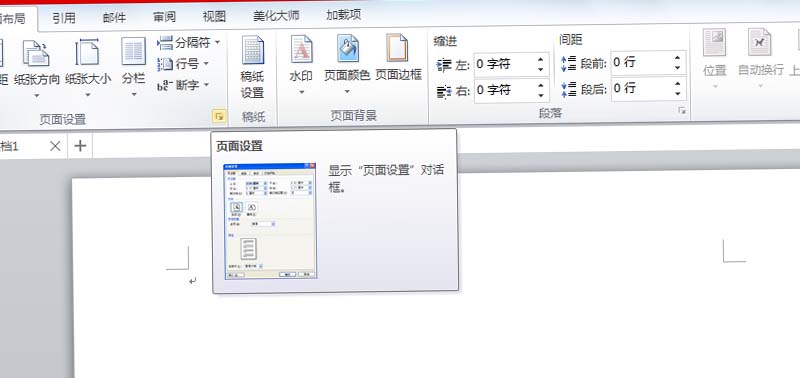 2、执行页面设置菜单,点击页面设置右下角的斜箭头。