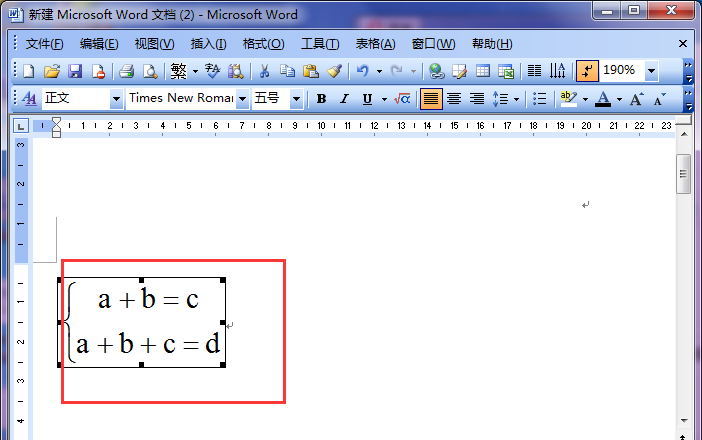 2、双击我们的方程组公式,选中方程组的两个方程