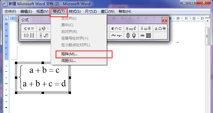 3、单击菜单栏中的"格式",选中"矩阵";