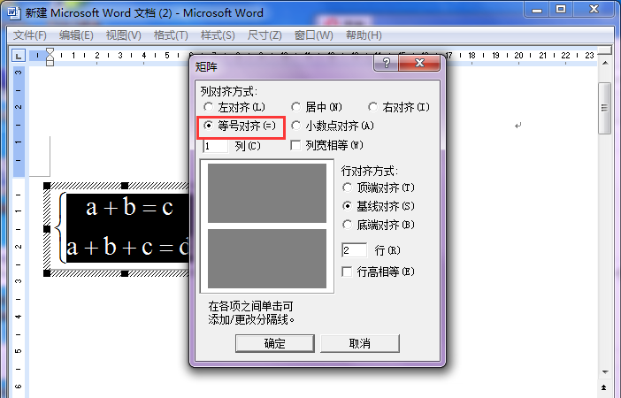 4、这样就会跳出一个矩阵的界面,我们选中"等号对齐";