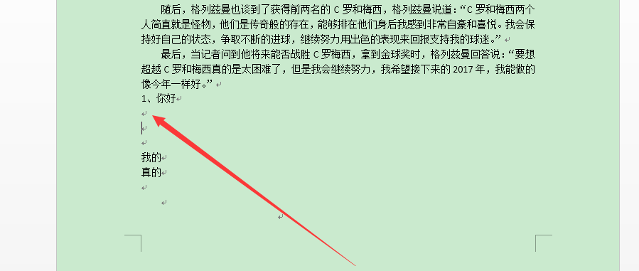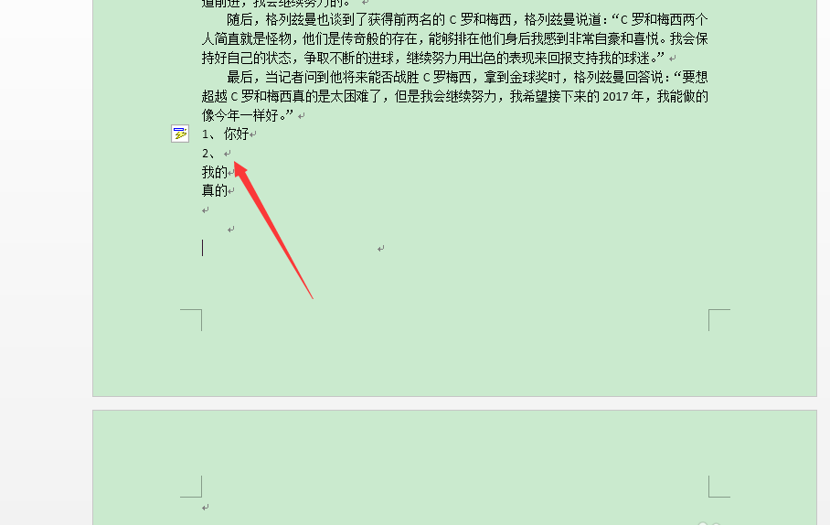 5、你会发现自动编号的编号被撤销。然后再重新回车。