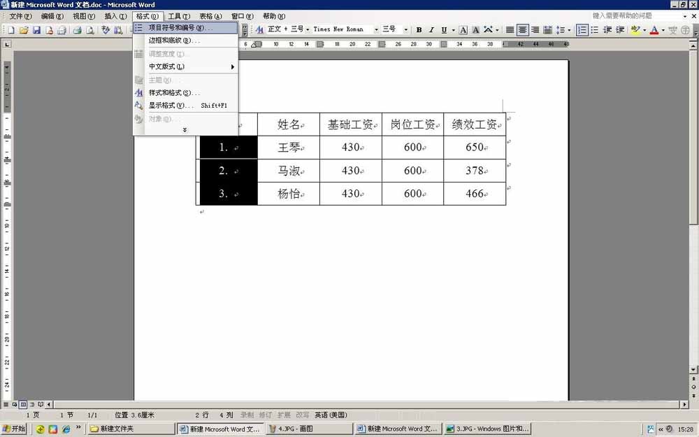 5、如果自己想换个别的编号格式,选择格式—项目符号和编号