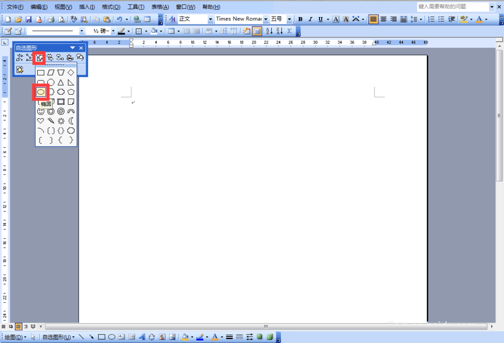 2、【自选图形】的窗口,点击"基本形状",选择"椭圆"。