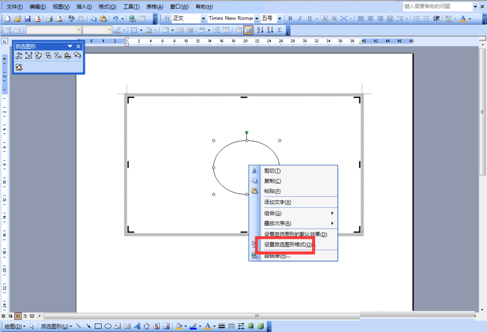 4、再鼠标右键点击椭圆形状,选择"设置自选图形格式"。