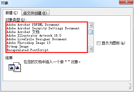 1、打开Word文档,在"菜单栏"中找到"插入"选项,在下拉菜单中点击"对象"命令,在弹出的"对象"对话框中我们可以看到很多对象类型: