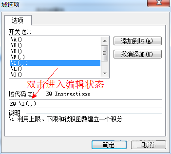 在开关选项中我们可以看到很多方式,选择你需要的代码双击,然后再下方的"域代码"中输入你需要的内容然后确认即可。