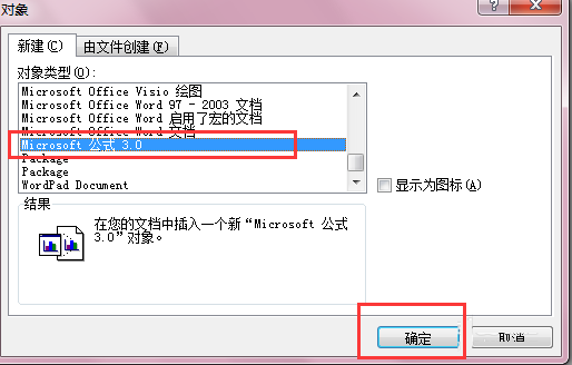 4.选择microsoft 公式3.0,确定
