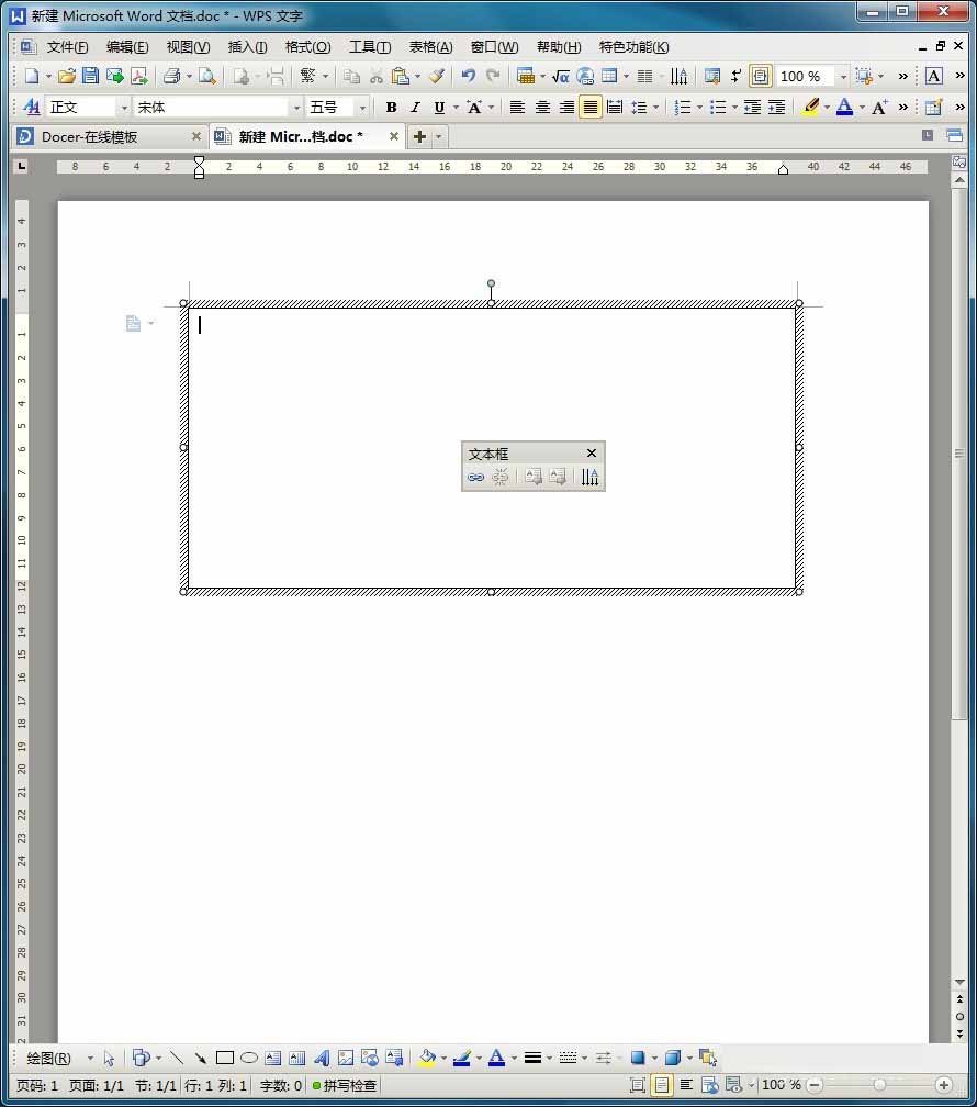 2、插入一个文本框,文本框大小和页面宽度一样大