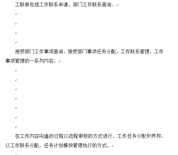 在工作内容沟通的过程以流程审核的方式进行,工作任务分配和跟踪,以工作联系分配,任务计划模块管理执行的方式。