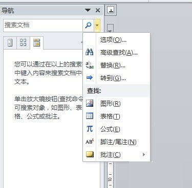 3、创建文档后,我们可以进行文档操作了,我们可以用替换功能来进行处理,Word自带的哟,在Word中打开导航栏,单击上面的搜索下拉框,