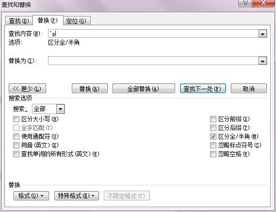 即用"^p"替换"^p^p",如图: