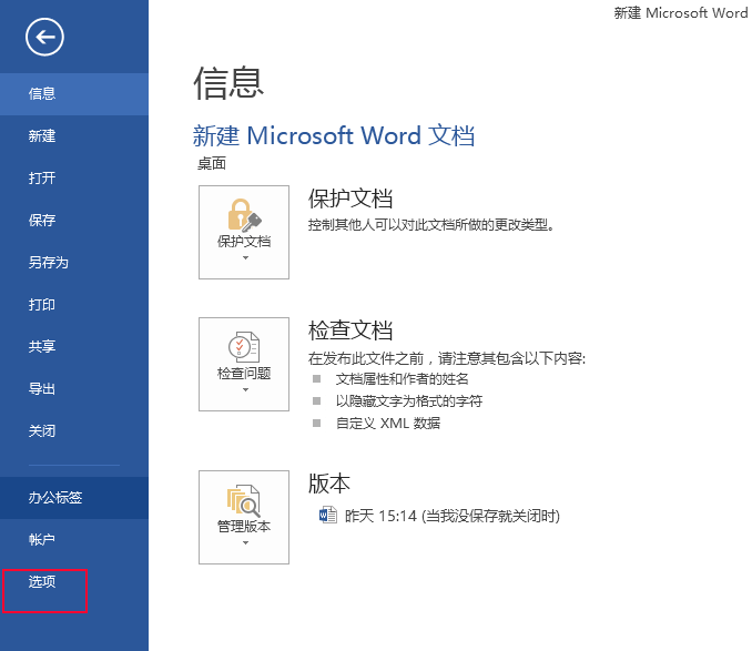 3、然后点击选项命令。
