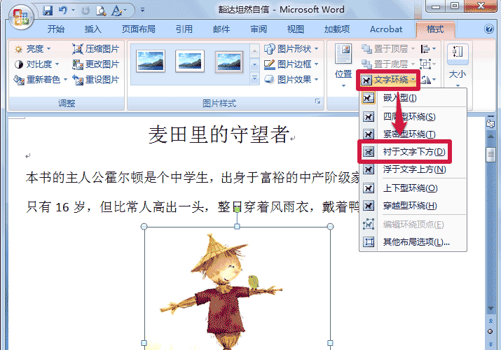 3、此时word文字环绕方式便已经设置好了。