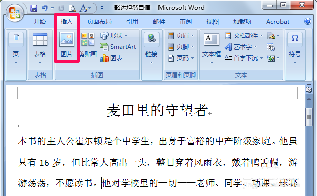 1、打开word后在菜单栏中选择插入图片。