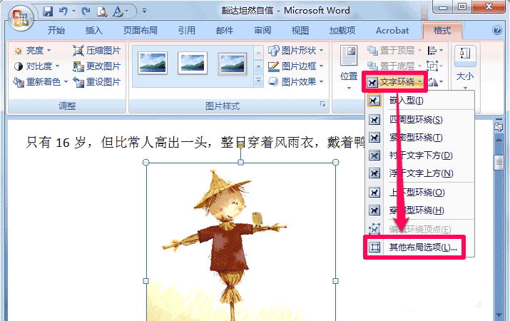 4、在文字环绕中还可以选择其它布局选项。