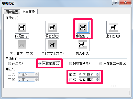 5、在高级版式中同样可以设置word图片环绕方式,并且可以进行详细设置。