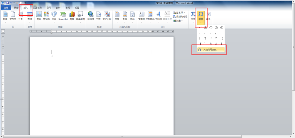 2、选择"插入"菜单下的"符号"--"其它符号"