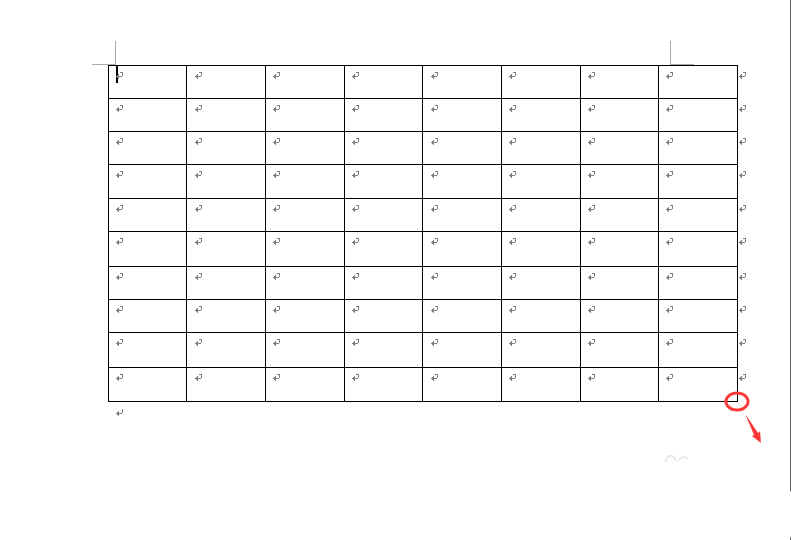 4、我们创建了这个表格以后,一般人都觉的这个表格太小了,想要稍微大一点的。我们可以把鼠标移动右下角的位置,出现一个双面箭头,我们往下拉,一直拉到合适的大小就行了。