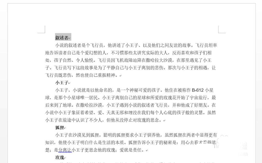 选定需要设置的内容,如图"叙述者"