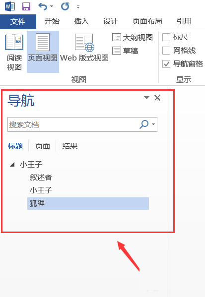 8、在右侧打开的窗格可以看到设置了大纲级别的标题,如下图所示