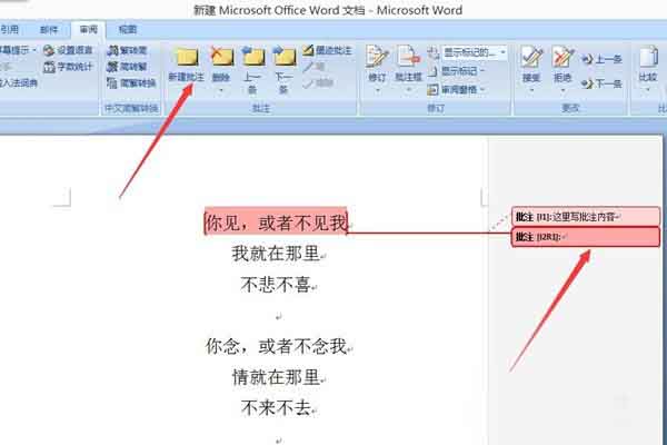 word2007如何设置批注?word新建及删除批注方法