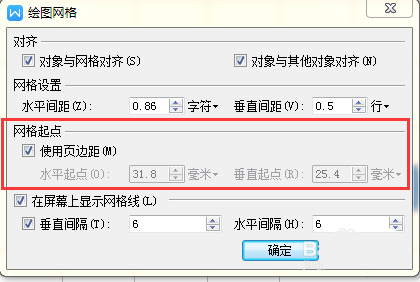 6、接下来看【网格起点】从字面上可以理解为是网格离页边的距离和垂直,当然这个只要把参数多去调试就能看的除效果,小百合把参数都设置为0,这时可以看到下图的网格是铺满了整张表格,离页边的距离是0 具体参数根据实际情况来调整 如图所示