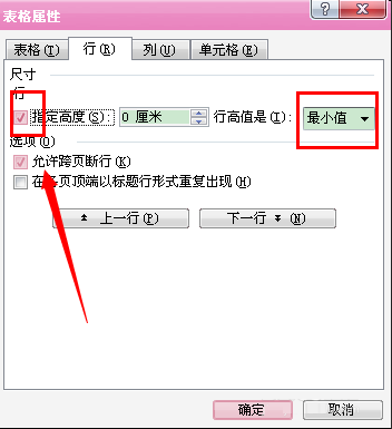 6、勾选指定高度,默认为最小值。如果想要最小值,在勾选指定高度后,点击确定即可。
