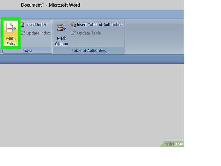 点击标记条目按钮。按钮看起来像一个空白的页面图标,上面有一个绿色的箭头和一条红线。它在屏幕右上角的“引用”工具栏上,位于插入题注和标记引文之间。点击后将打开一个名为标记索引项的对话框,以便你为索引选择重要的术语和短语。