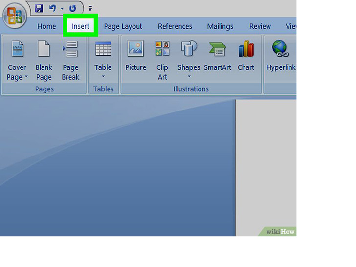 点击插入选项卡。这个按钮位于屏幕顶部的MS Word工具栏上。