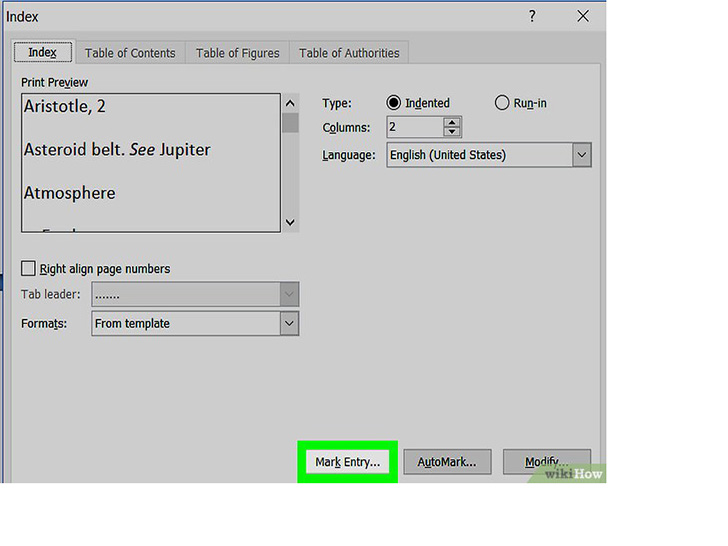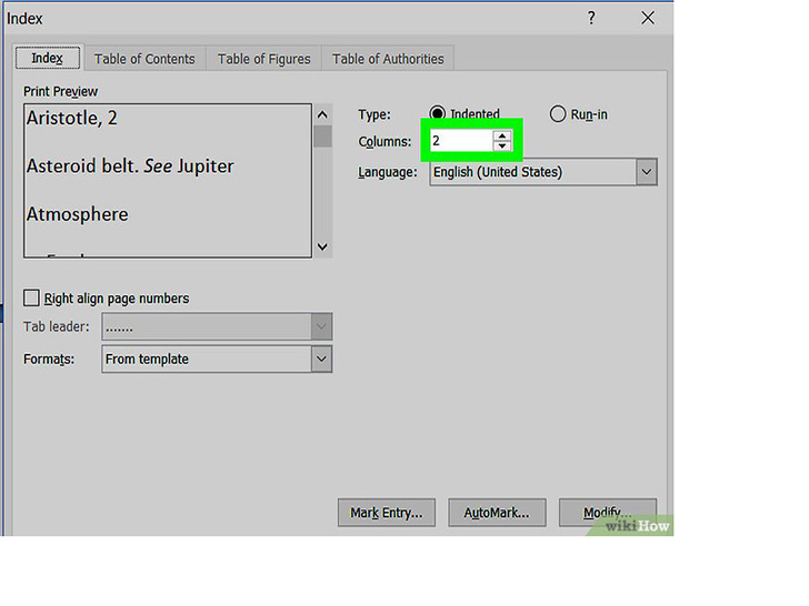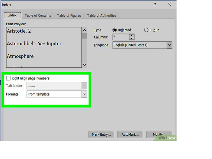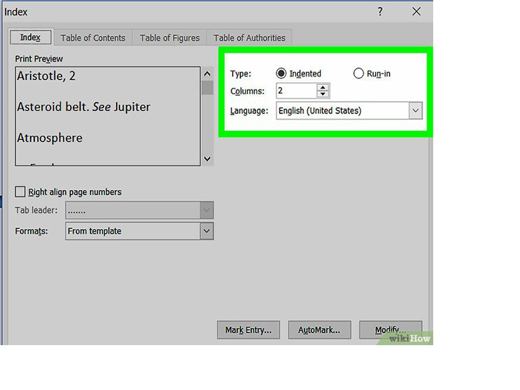 - 你也可以选择来自模板,并点击修改按钮,从而创建自己的设计。这样你就可以自定义所有索引项和次索引项的字体、间距和样式,从而创建自己的设计格式。