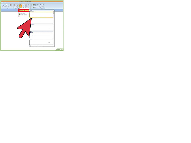 选择“页码”来设置编号。你有很多选择来设置页码的位置,包括部分艺术字。