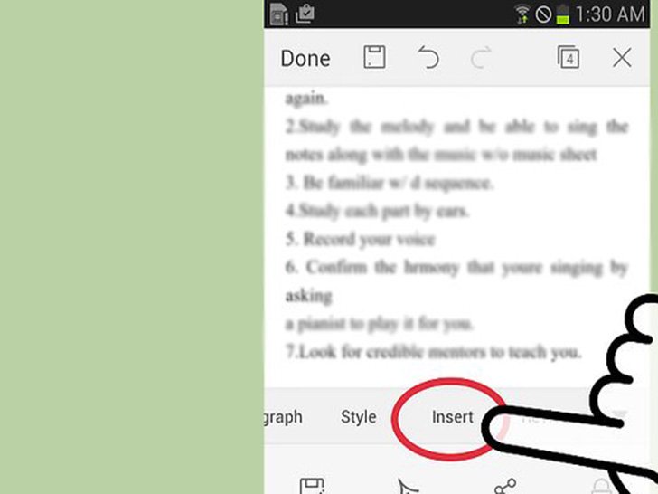 点击“插入”。将会显示一个用于设置“文档”格式的简化菜单,使用起来甚至比桌面应用程序更简单。