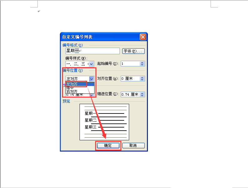 7、然后"编号位置"选择"左对齐",都选择好之后点击"确定"