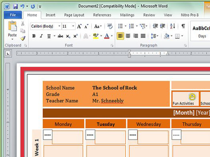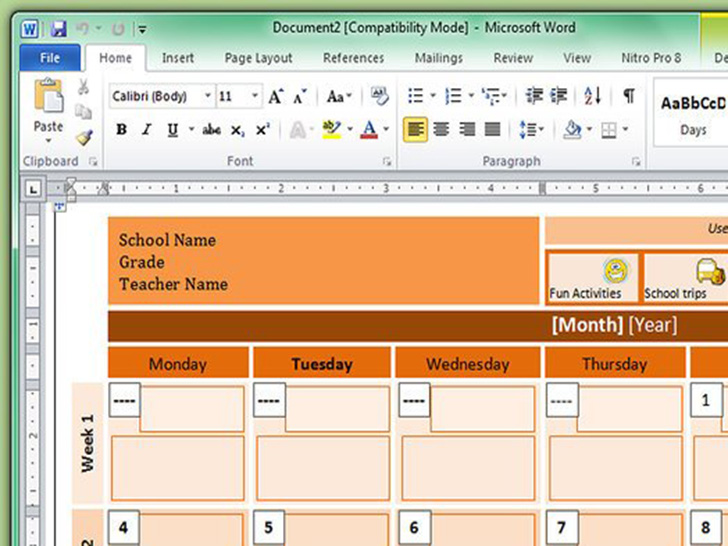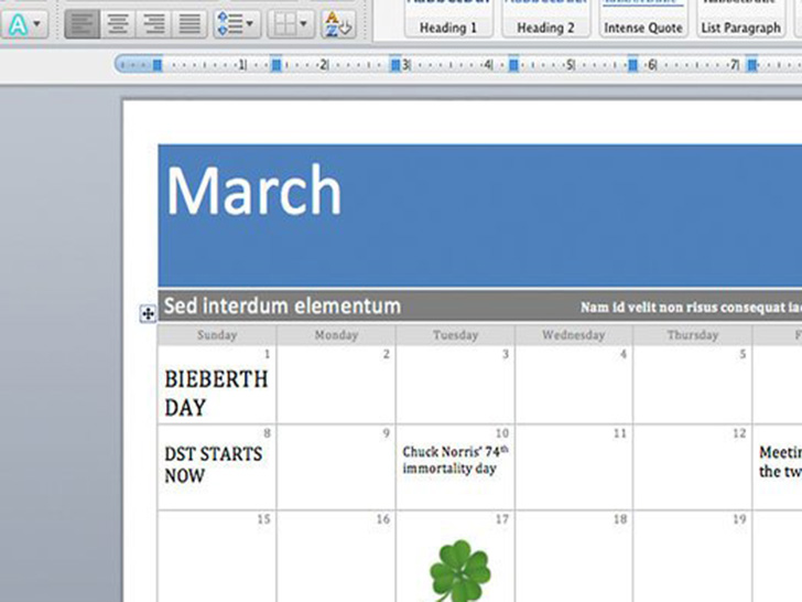 像编辑其它Word文档一样,编辑你的日历。