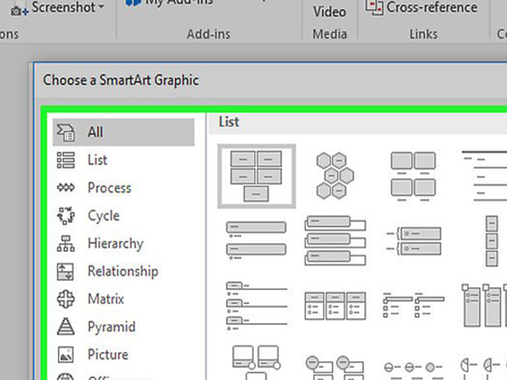 点击智能图表。它位于屏幕顶部工具栏的“插图”面板中。图标是一个绿色的箭头,上面有一张白纸。
