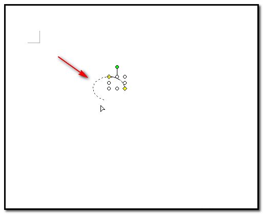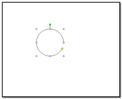 4、光标点住其中一个黄点,拉动,会显出弧形的虚线;按照一定的大小往弧线另一端延伸;形成一个的缺口的圆形。