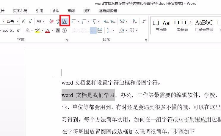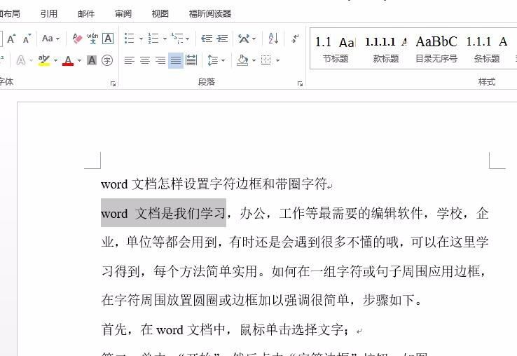 word文档怎样设置字符边框和带圈字符,word文档是我们学习,办公,工作等最需要的编辑软件,学校,企业,单位等都会用到,有时还是会遇到很多不懂的哦,可以在这里学习得到,每个方法简单实用。如何在一组字符或句子周围应用边框,在字符周围放置圆圈或边框加以强调很简单,步骤如下。