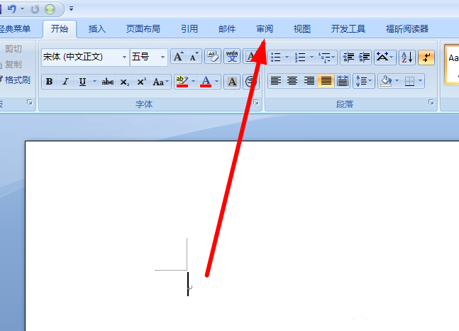 3、然后我们切换到上边的审阅字样的选项卡