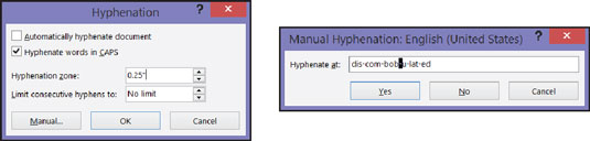 告诉Word如何进行连字符(左),并确定连字符的位置(右)。
