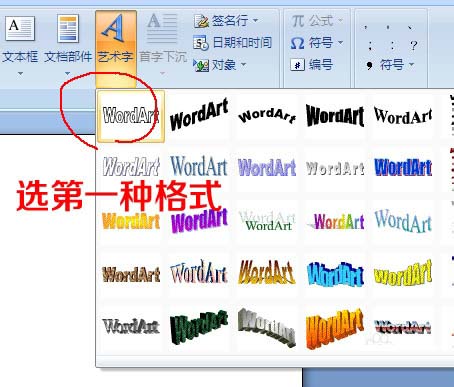 步骤和word2003大同小异,打开word2007,插入,艺术字,选第一个格式,编辑文字