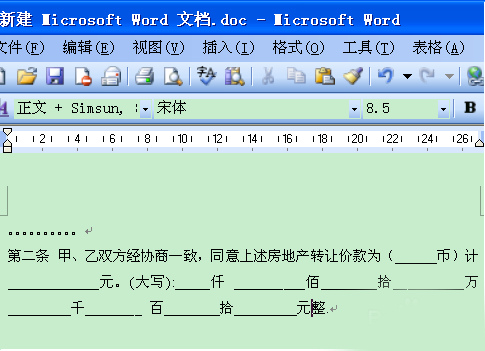 现在就来演示上面的文档是怎么做出来的。新建立一个word文档,输入横线前面的文字,如下图所示。
