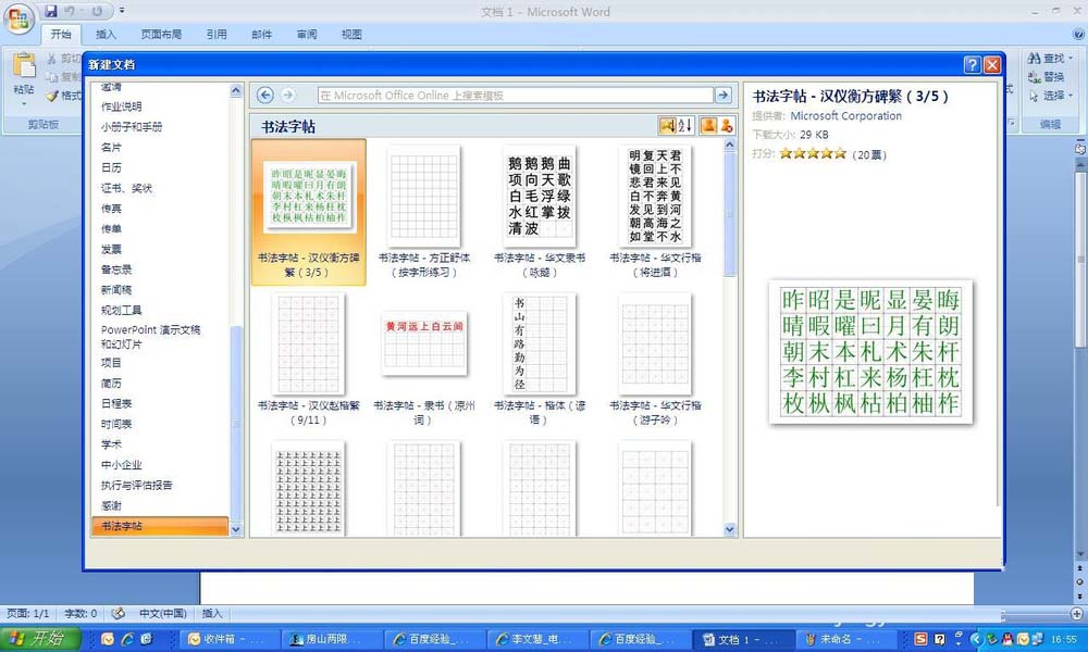 大人小孩学习书法都是从字帖开始学习的,但是市面上卖的字帖有时候并不尽如人意,word2007提供了一个模板,可以自己来制作字帖,非常方便。