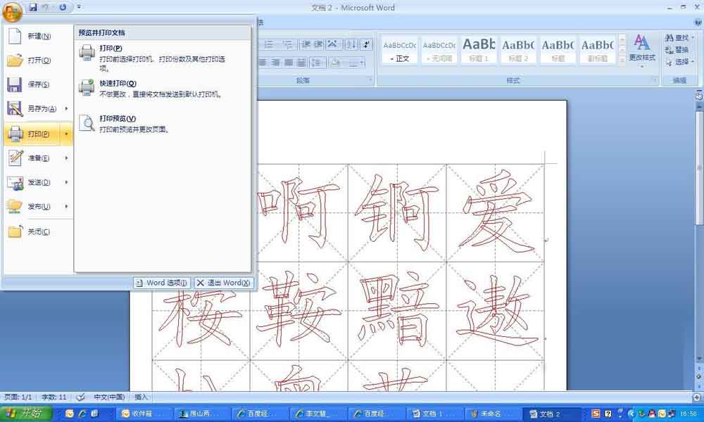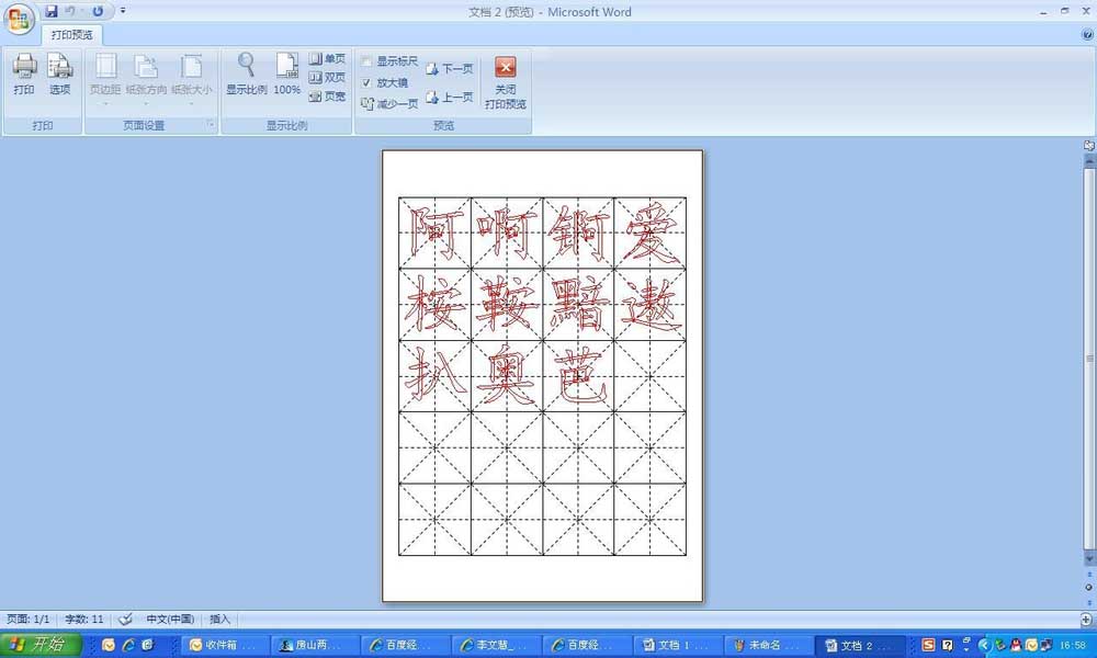 6、打印预览后,如果没有其他问题就可以打印出来,进行书法练习啦。