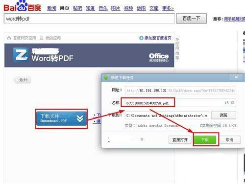 方法如下,百度搜索"word转pdf",就会出现转换应用,点击浏览,上传我们的word文档,然后点击生成PDF文件按钮,过一会儿就会转换完成。